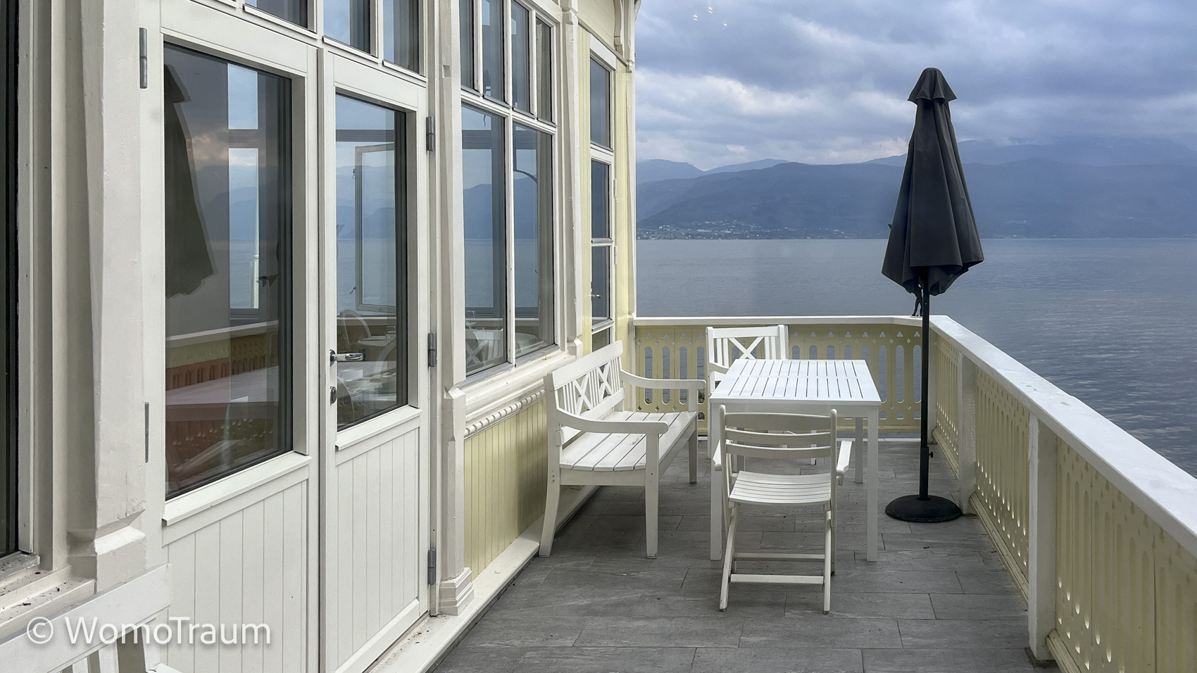 Die Sitzplätze im Aussenbereich des Hotelrestaurants liegen wunderschön und sind von altem Baumbestand umgeben. Leise plätschert ein Brunnen. Die weissen Sitzmöbel und Sonnenschirme ohne Werbeaufdruck gefallen uns gut. Leider warten wir mindestens eine Viertelstunde bis eine der wirklich bemühten und fleissigen Bedienungen eine Speisekarte bringt. Wir suchen uns etwas schönes zu Essen aus und warten ca. eine halbe Stunde, bis das Essen relativ lauwarm kommt.